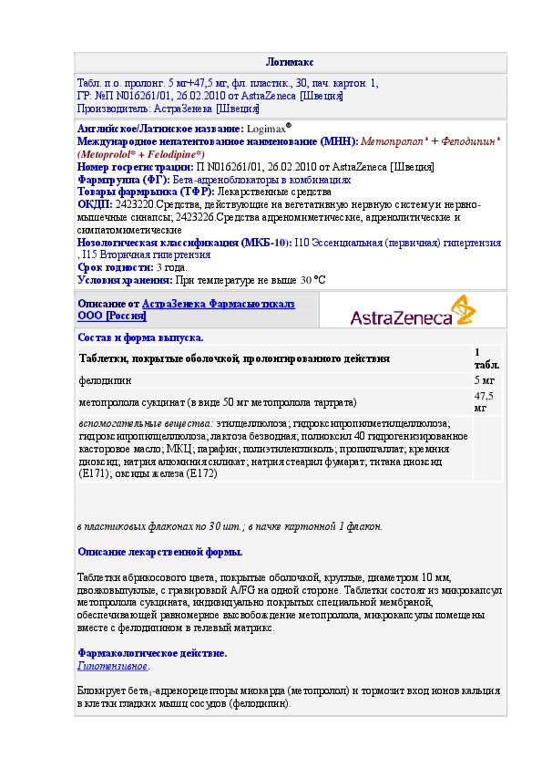 Инструкция по применению по применению лекарственного препарата Логимакс можно скачать ниже: