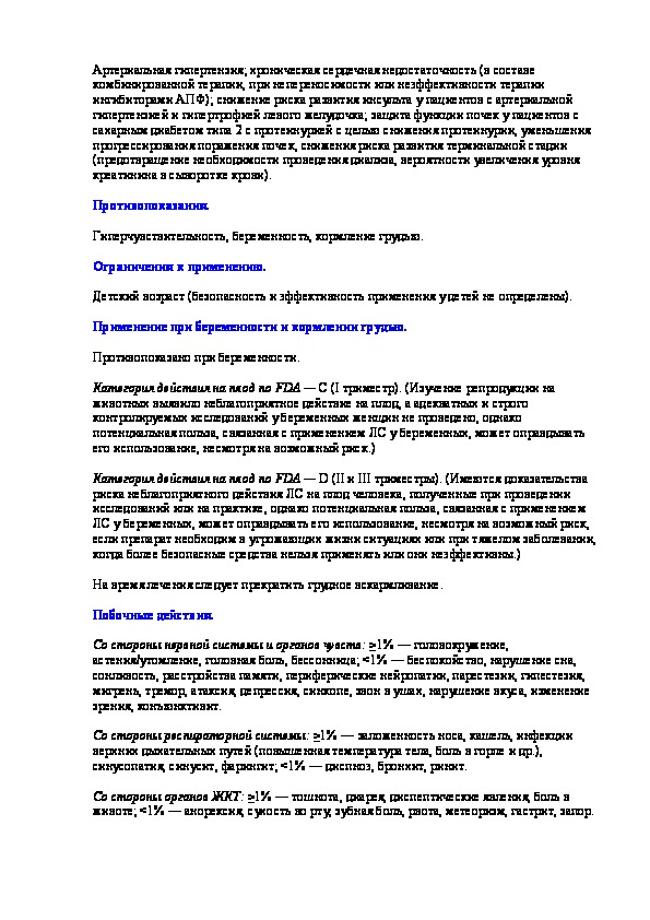 С помощью онлайн просмотра, Вы можете быстро просмотреть содержимое инструкции по применению лекарственного препарата Лозартан калия.