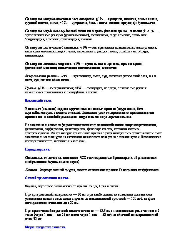 Нет необходимости печатать всю инструкцию по применению лекарственного препарата Лозартан калия, можно выбрать только нужные страницы инструкции по применению того или иного лекарственного препарата или таблеток.