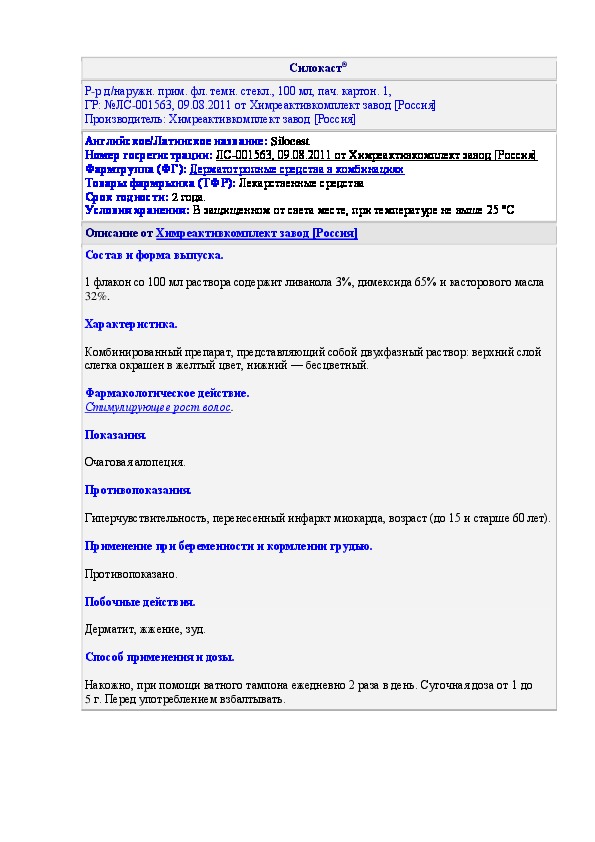Инструкция по применению по применению лекарственного препарата Силокаст можно скачать ниже: