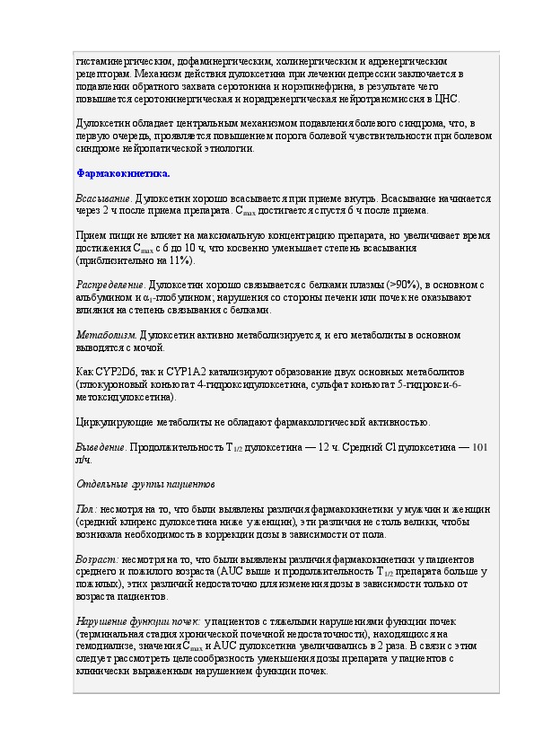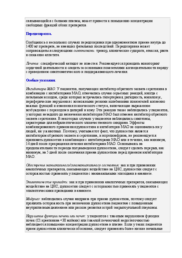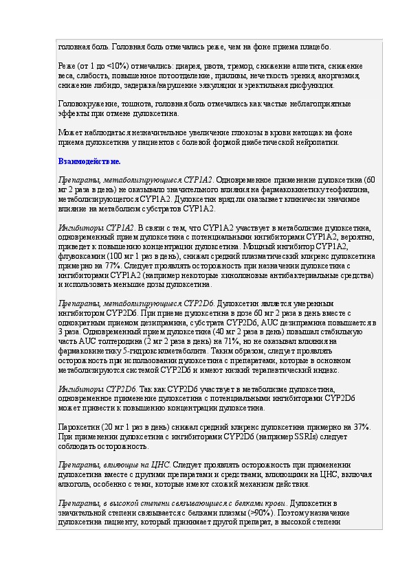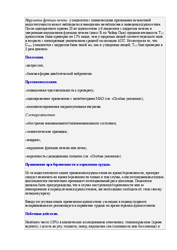 Инструкция по применению лекарственного препарата Симбалта