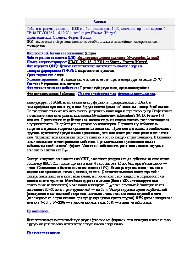 Наша цель состоит в том, чтобы предоставить вам быстрый доступ к содержанию инструкции по применению лекарственного препарата Симпас. С помощью онлайн просмотра, Вы можете быстро просмотреть содержимое инструкции по применению лекарственного препарата Симпас.
