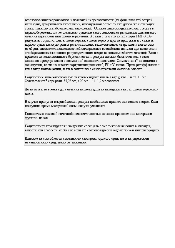 Если листать инструкцию по применению по применению лекарственного препарата СИМВАЛИМИТ прямо на сайте, не очень удобно для Вас, есть два возможных решения: