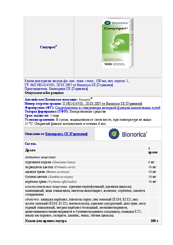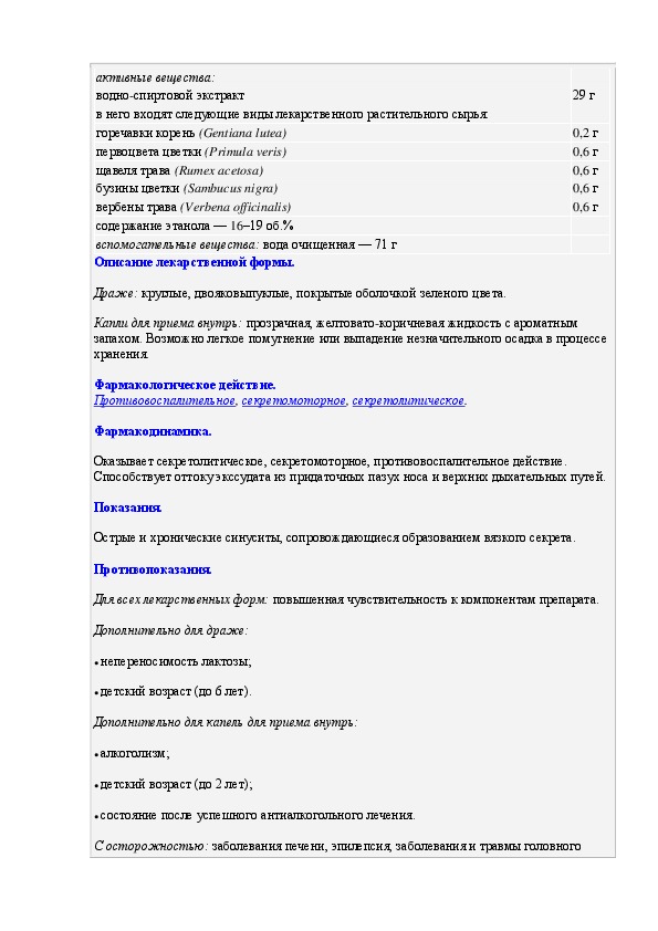 Перед Вами Инструкция по применению лекарственного препарата Синупрет. Вы можете ознакомиться и скачать данную