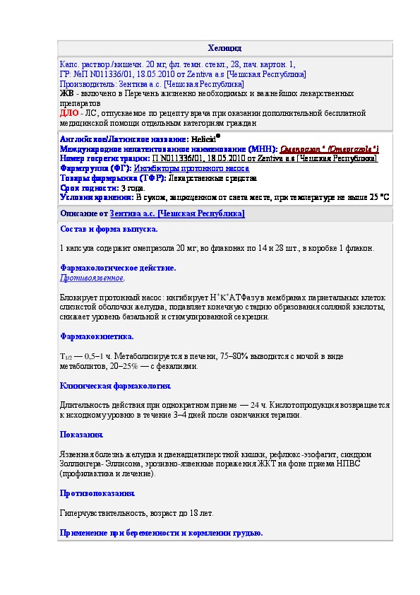 Перед Вами Инструкция по применению лекарственного препарата Хелицид. Вы можете ознакомиться и скачать данную