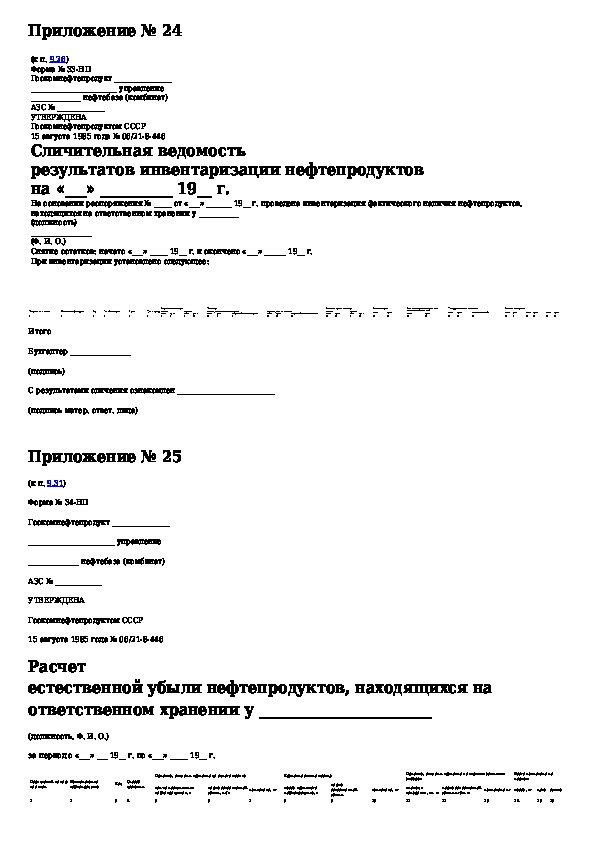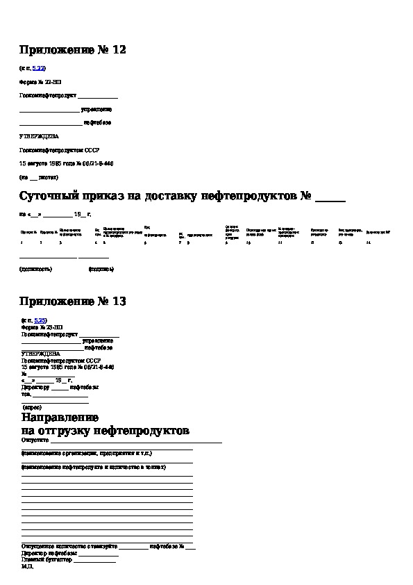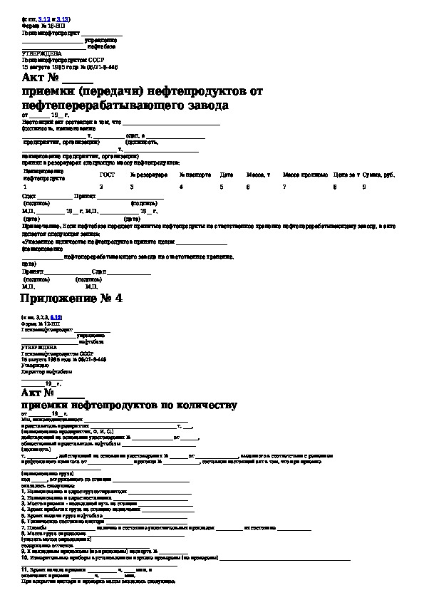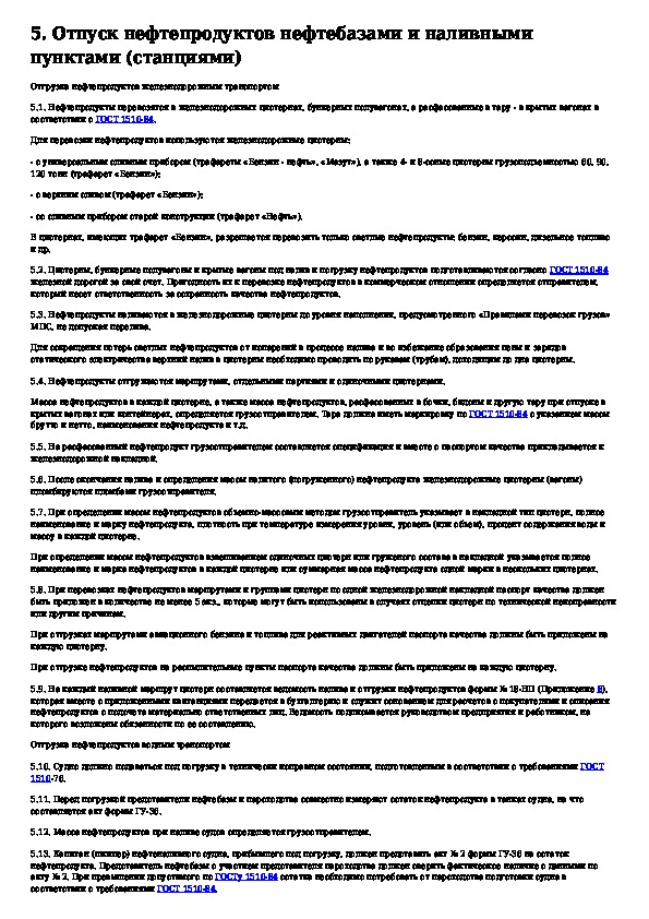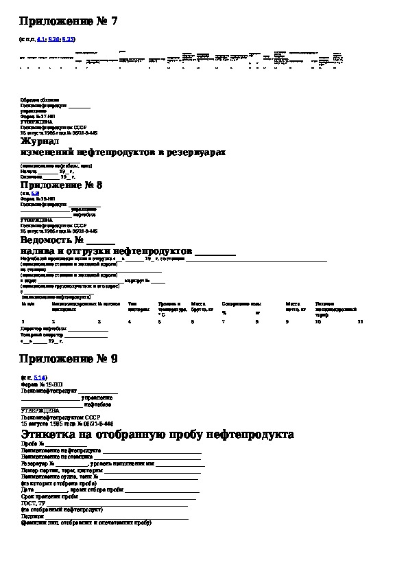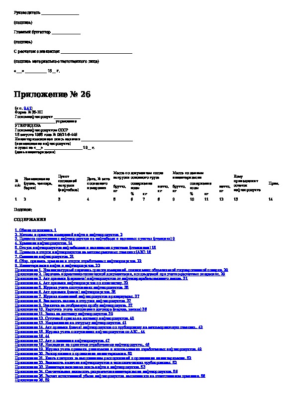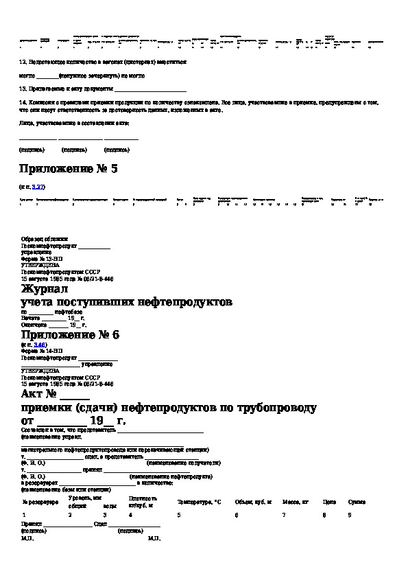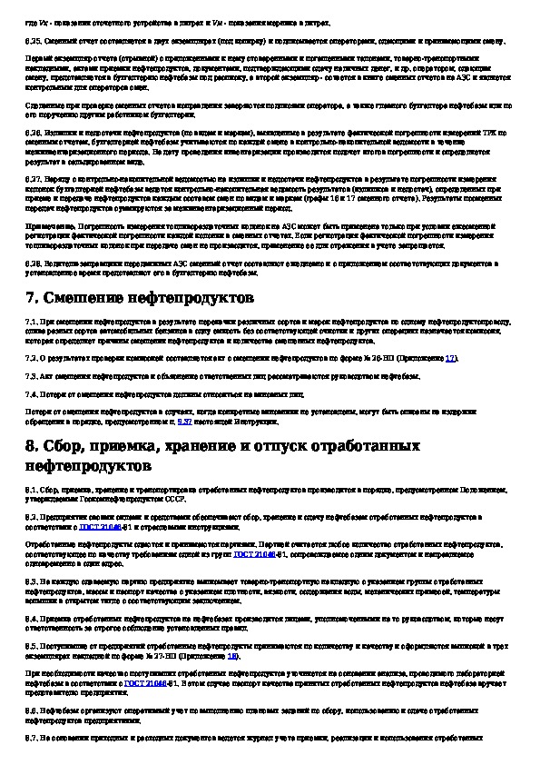 Инструкция о порядке поступления, хранения, отпуска и учета нефти и нефтепродуктов на нефтебазах, наливных пунктах и автозаправоч