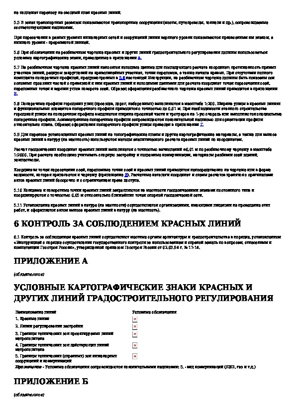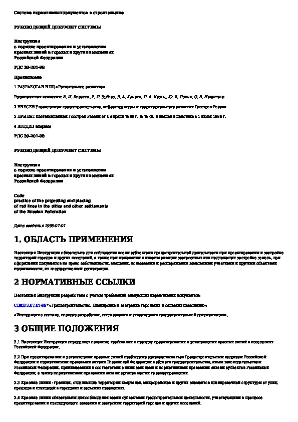Инструкция о порядке проектирования и установления красных линий в городах и других поселениях Российской Федерации