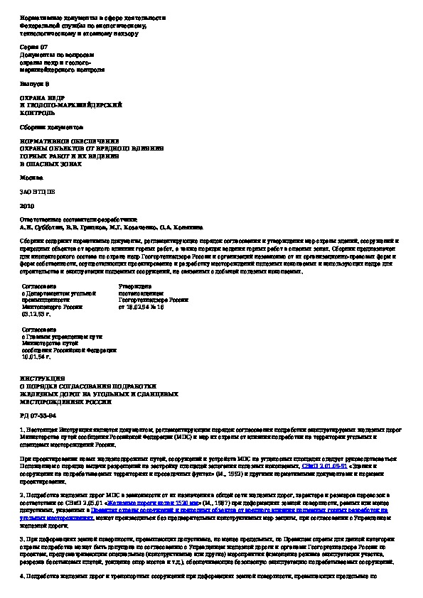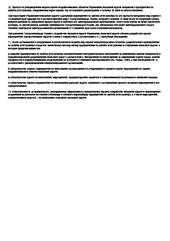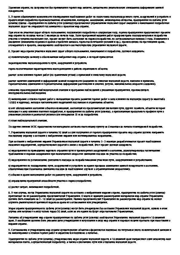 Инструкция о порядке согласования подработки железных дорог на угольных и сланцевых месторождениях России