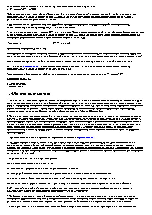 РД 07-06-2006: Инструкция об организации обучения работников федеральной службы по экологическому, технологическому и атомному надзору по вопр