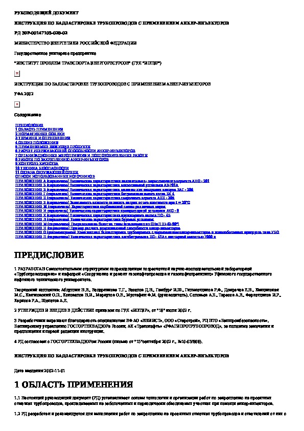 Наша цель состоит в том, чтобы предоставить вам быстрый доступ к содержанию документа Инструкция по балластировке трубопроводов с применением анкер-инъекторов.