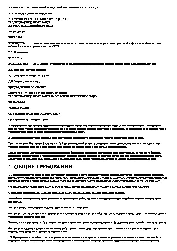 Инструкция по безопасному ведению геологоразведочных работ на морском припайном льду
