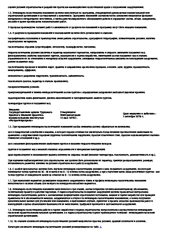 Инструкция по инженерно-геологическим изысканиям для проектирования и строительства метрополитенов, горных железнодорожных и ав