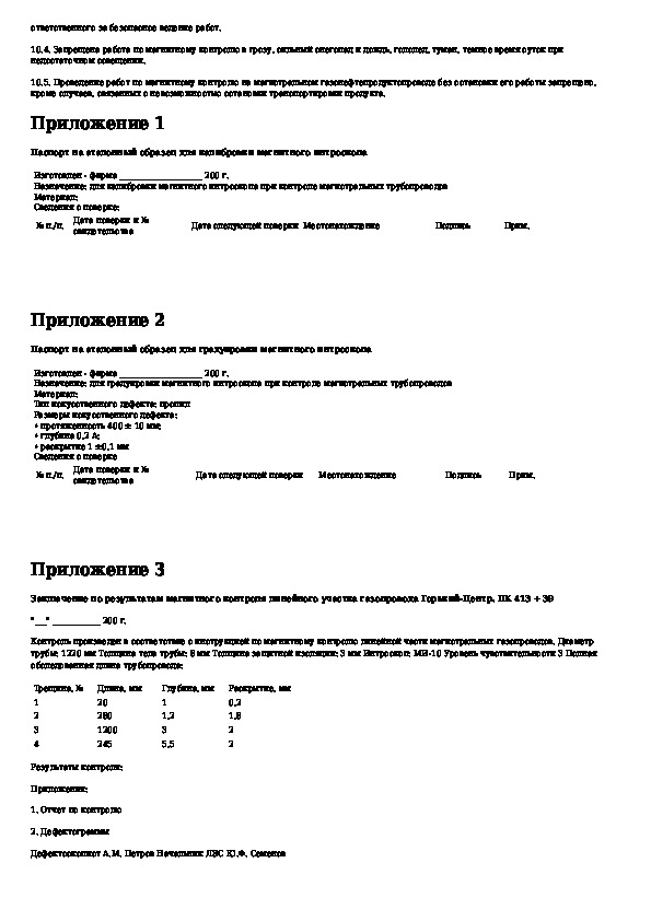 Инструкция по магнитному контролю линейной части магистральных газонефтепродуктопроводов