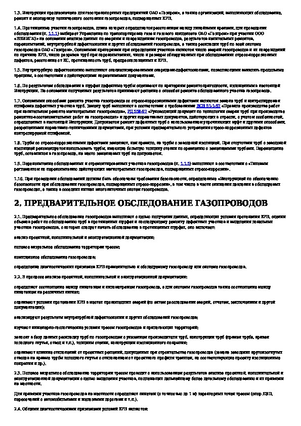 Наша цель состоит в том, чтобы предоставить вам быстрый доступ к содержанию документа Инструкция по обследованию и ремонту газопроводов, подверженных КРП в шурфах.