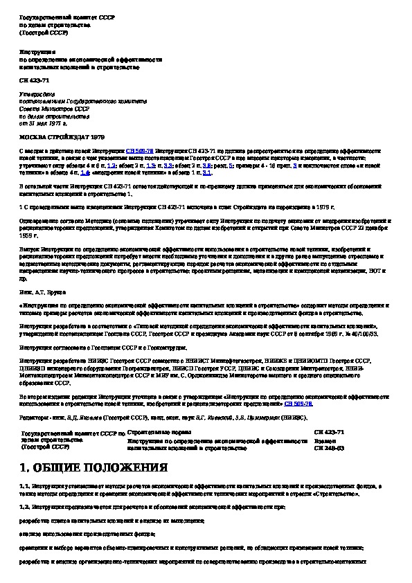 СН 423-71: Инструкция по определению экономической эффективности капитальных вложений в строительстве