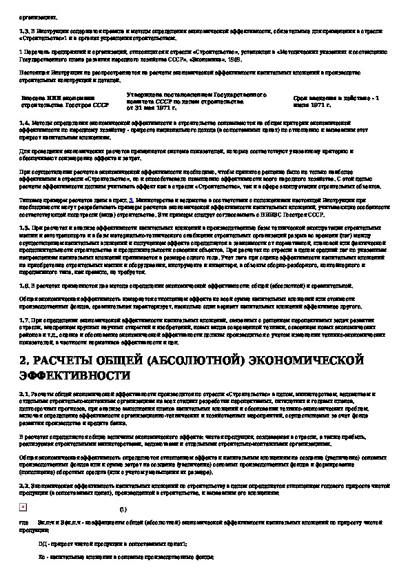 Инструкция по определению экономической эффективности капитальных вложений в строительстве