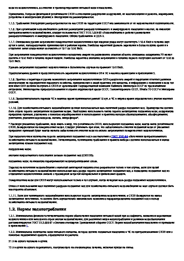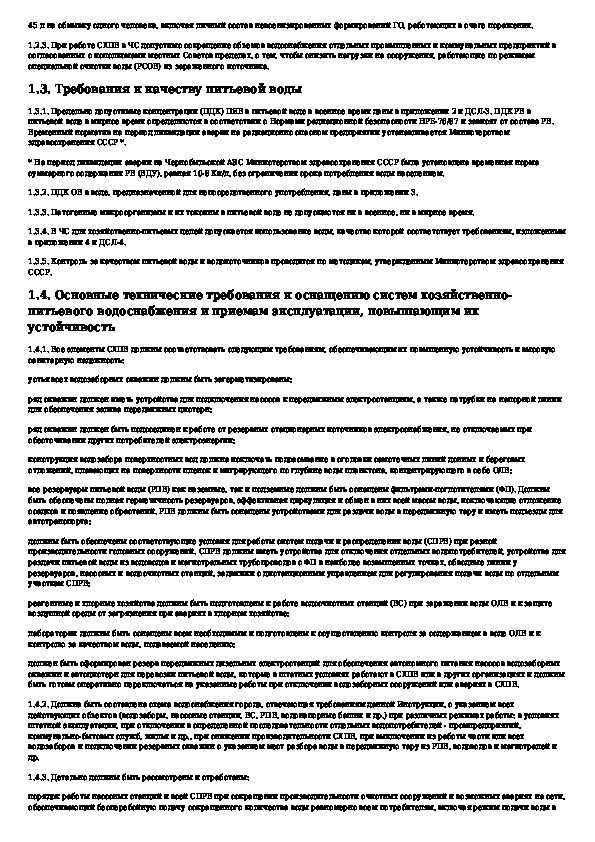Инструкция по подготовке и работе систем хозяйственно-питьевого водоснабжения в чрезвычайных ситуациях