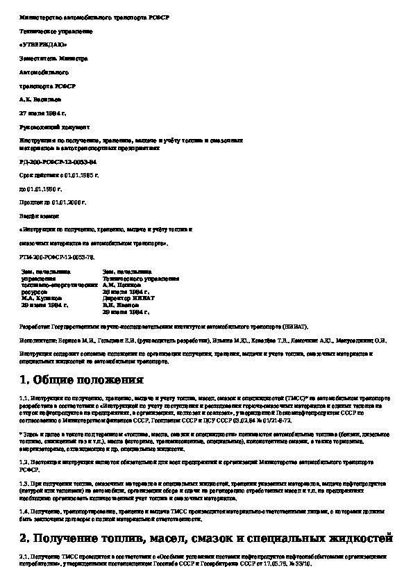 Наша цель состоит в том, чтобы предоставить вам быстрый доступ к содержанию документа Инструкция по получению, хранению, выдаче и учету топлив и смазочных материалов в автотранспортных предприятиях.