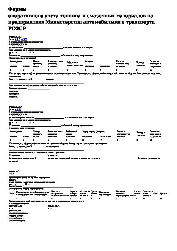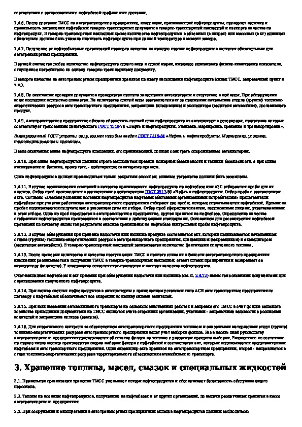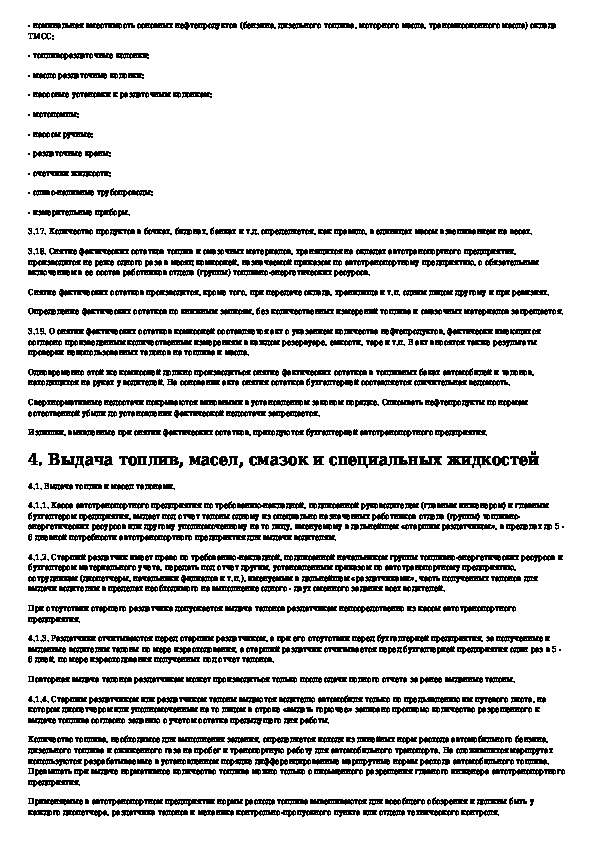 Инструкция по получению, хранению, выдаче и учету топлив и смазочных материалов в автотранспортных предприятиях