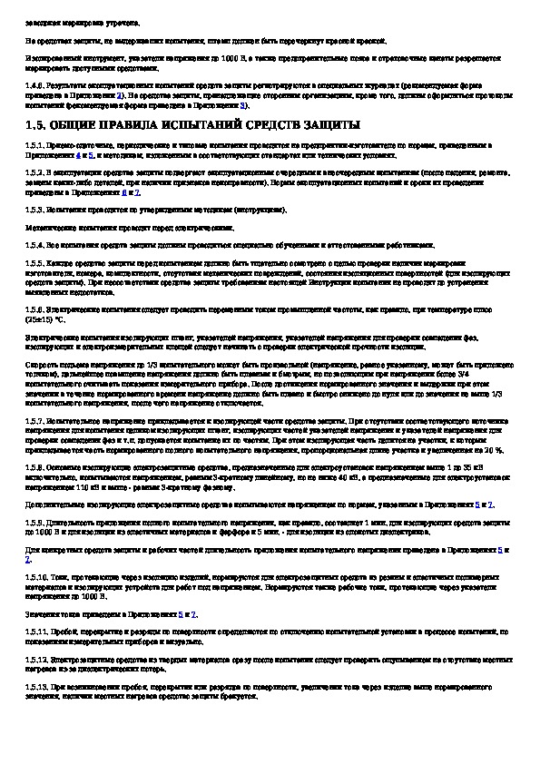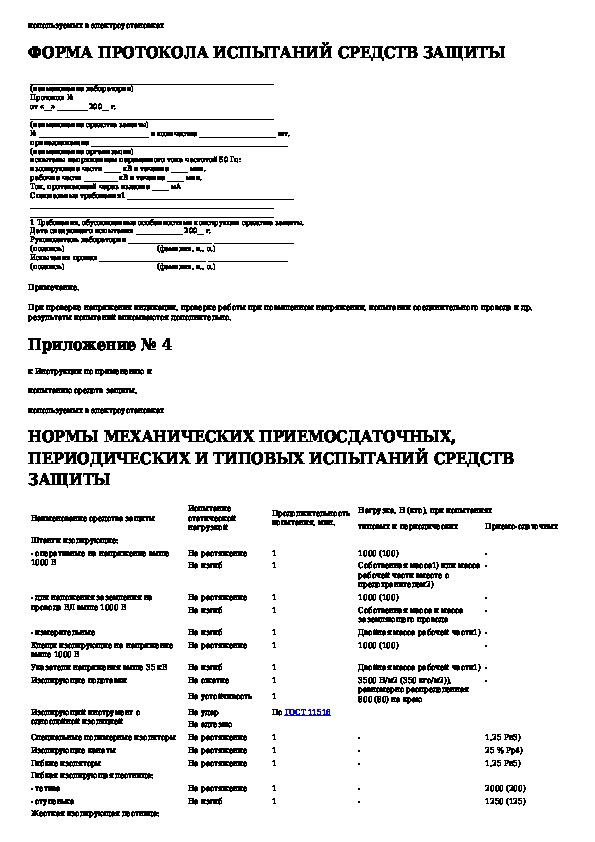 Инструкция по применению и испытанию средств защиты, используемых в электроустановках