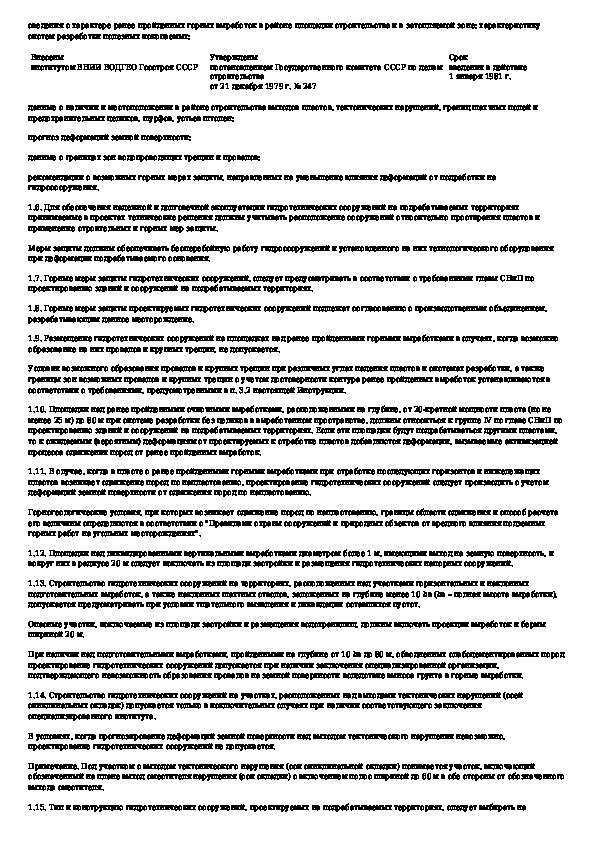 Инструкция по проектированию, строительству и эксплуатации гидротехнических сооружений на подрабатываемых горными работами тер