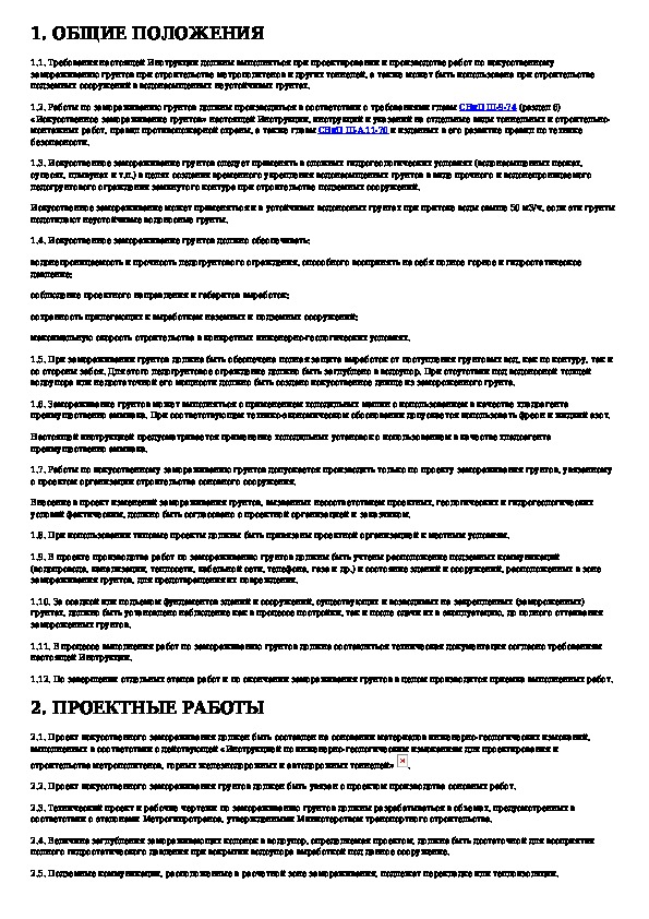 • Просмотр в полноэкранном режиме - легко просмотреть документ Инструкция по проектированию и производству работ по искусственному замораживанию грунтов при строительстве метрополитенов и то (без загрузки его на свой компьютер).