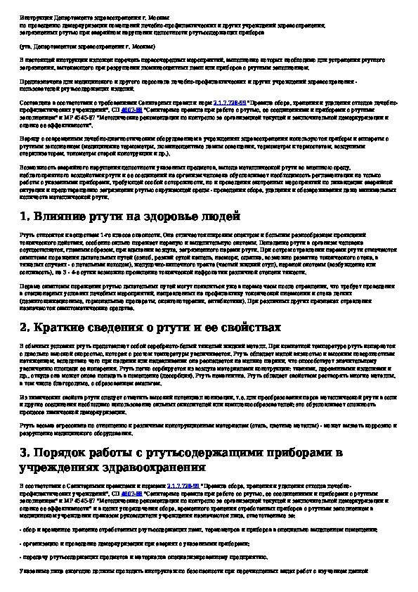 Наша цель состоит в том, чтобы предоставить вам быстрый доступ к содержанию документа Инструкция по проведению демеркуризации помещений лечебно-профилактических и других учреждений здравоохранения, загрязненных р.