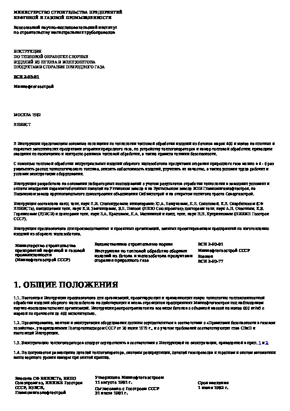Инструкция по тепловой обработке сборных изделий из бетона и железобетона продуктами сгорания природного газа
