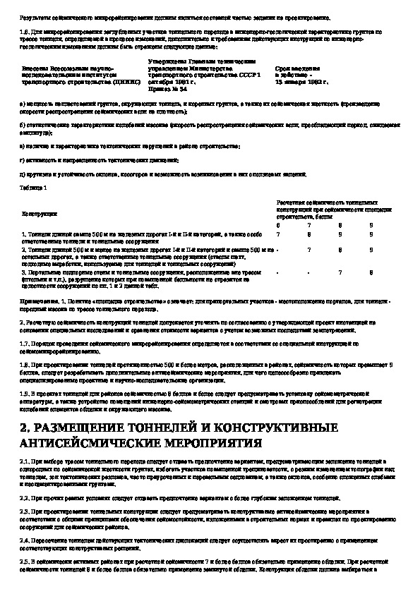 Инструкция по учету сейсмических воздействий при проектировании горных транспортных тоннелей
