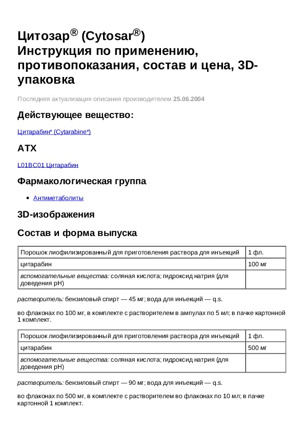 Инструкция для препарата Цитозар