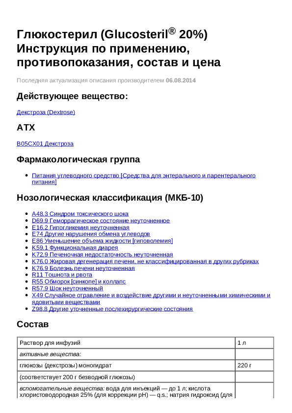 Перед Вами Инструкция для препарата Глюкостерил . Вы можете ознакомиться и скачать данную