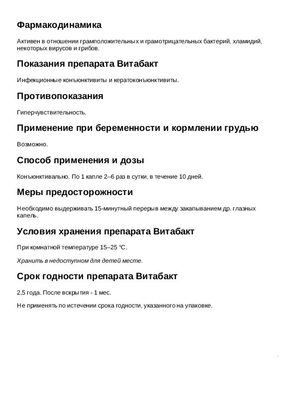 Перед Вами Инструкция для препарата Витабакт . Вы можете ознакомиться и скачать данную