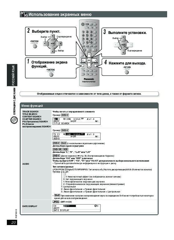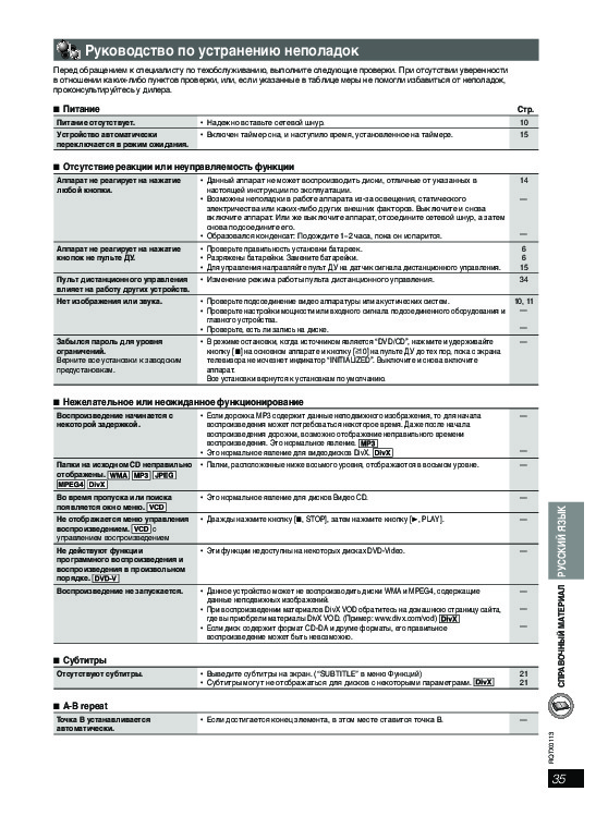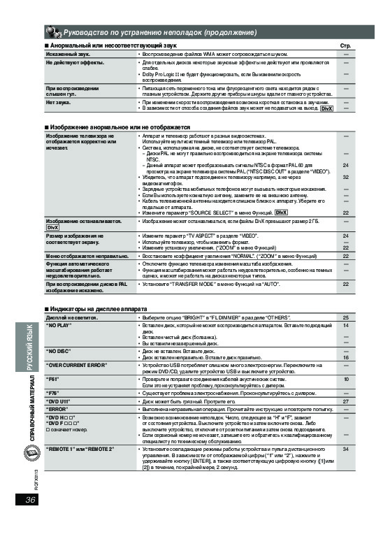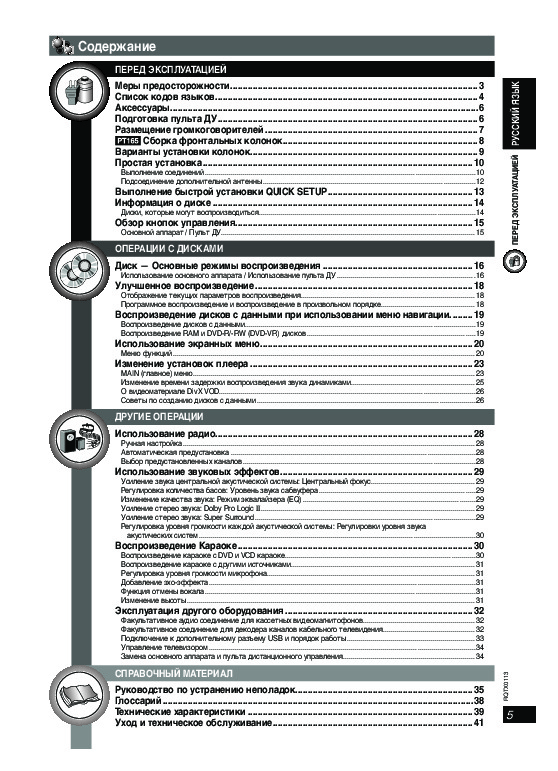 С помощью онлайн просмотра, Вы можете быстро просмотреть содержимое инструкции и найти решение проблемы с домашнего кинотеатра Panasonic SC-PT160.