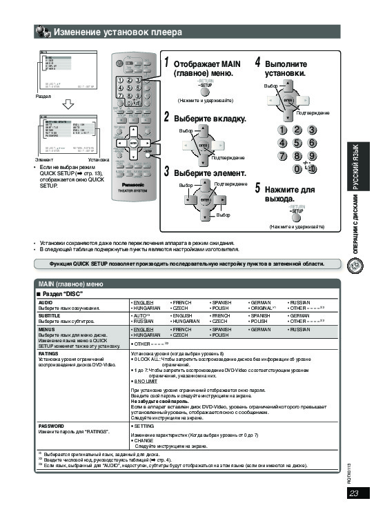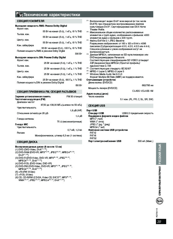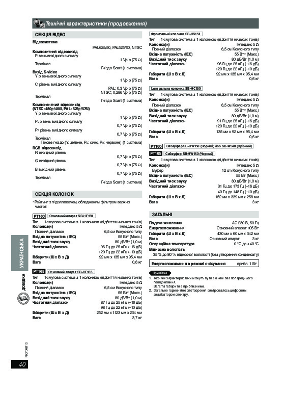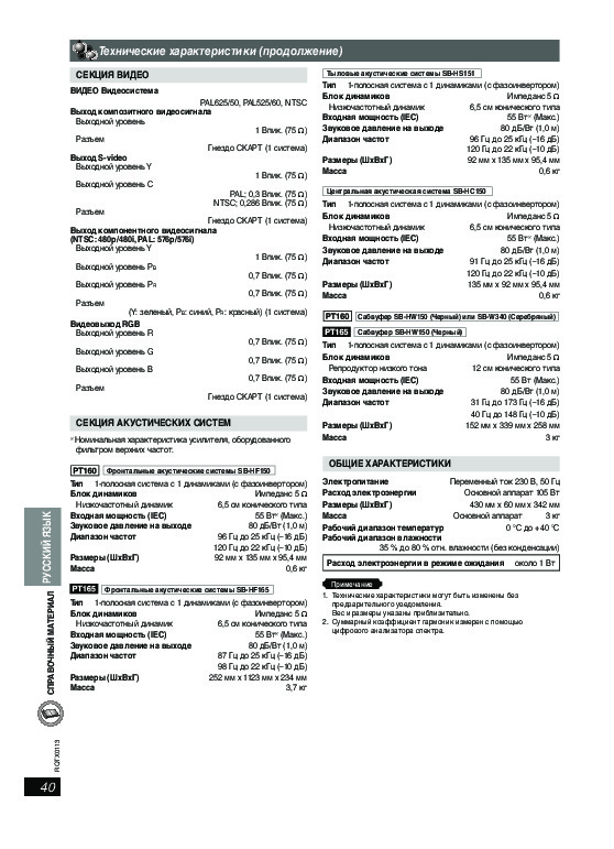 Нет необходимости печатать все руководство домашнего кинотеатра Panasonic SC-PT160, можно выбрать только нужные страницы инструкции.
