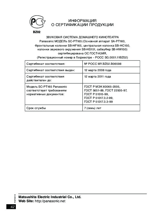 Для просмотра инструкции пользователя домашнего кинотеатра Panasonic SC-PT160 на полном экране, используйте кнопку «Открыть в Pdf-viewer».
