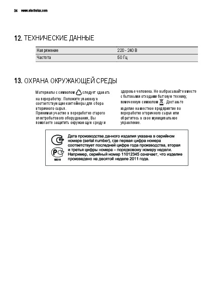 Инструкции по эксплуатации бытовой техники и электроники > Electrolux