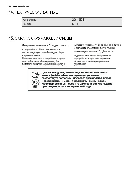Инструкции по эксплуатации бытовой техники и электроники > Electrolux