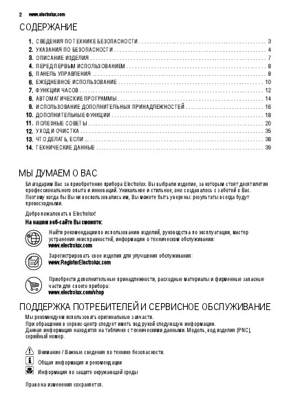 Нет необходимости печатать все руководство духового шкафа Electrolux EOA 95751 BX, можно выбрать только нужные страницы инструкции.