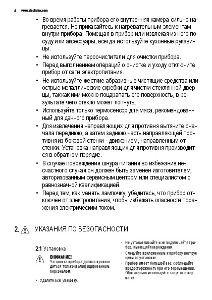 Нет необходимости печатать все руководство духового шкафа Electrolux EOA 95851 AV, можно выбрать только нужные страницы инструкции.