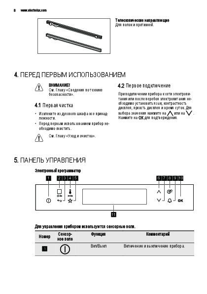 Если листать руководство пользователя духового шкафа Electrolux EOA 95851 AV прямо на сайте, не очень удобно для Вас, есть два возможных решения: