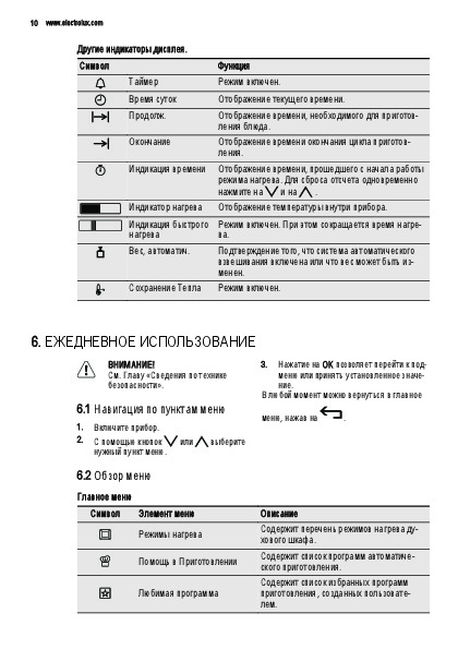 С помощью онлайн просмотра, Вы можете быстро просмотреть содержимое инструкции и найти решение проблемы с духового шкафа Electrolux EOA 95851 AV.