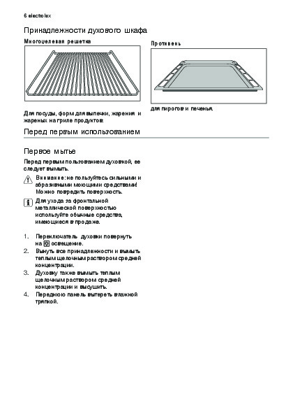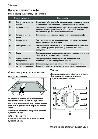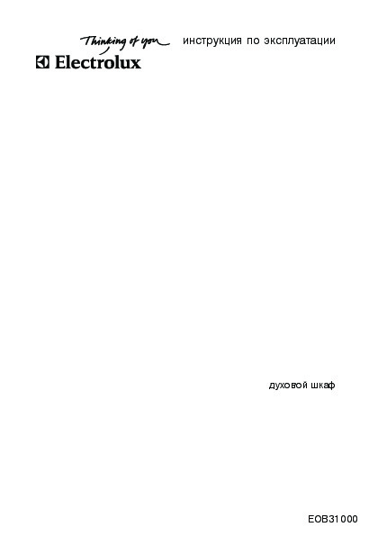 Перед Вами Инструкция духового шкафа Electrolux EOB 31000 R. Вы можете ознакомиться и скачать данное руководство по эксплуатации бесплатно. Инструкция по применению на русском языке, предложенная производителем, позволяет правильно использовать Вашу бытовую технику и электронику.