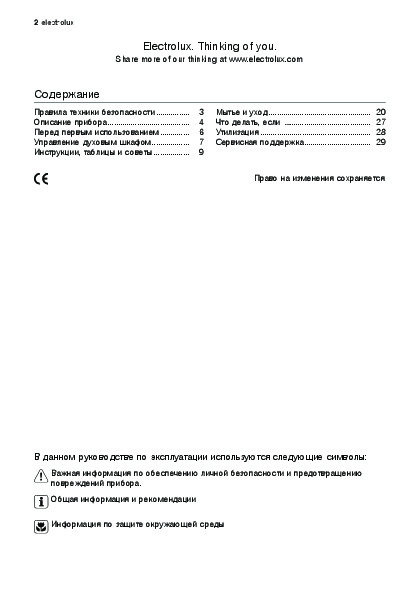 Наша цель состоит в том, чтобы предоставить вам быстрый доступ к содержанию инструкции для духового шкафа Electrolux EOB 31000 R. С помощью онлайн просмотра, Вы можете быстро просмотреть содержимое инструкции и найти решение проблемы с духового шкафа Electrolux EOB 31000 R.