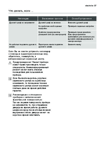 Если листать руководство пользователя духового шкафа Electrolux EOB 31000 R прямо на сайте, не очень удобно для Вас, есть два возможных решения:
