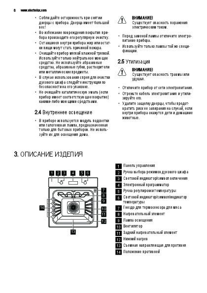 С помощью онлайн просмотра, Вы можете быстро просмотреть содержимое инструкции и найти решение проблемы с духового шкафа Electrolux EOB 3311 AOX.