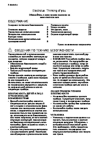 Инструкции по эксплуатации бытовой техники и электроники > Electrolux