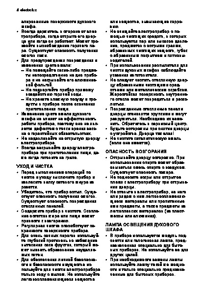 Перед Вами Инструкция духового шкафа Electrolux EOB 33300 X. Вы можете ознакомиться и скачать данное руководство по эксплуатации бесплатно. Инструкция по применению на русском языке, предложенная производителем, позволяет правильно использовать Вашу бытовую технику и электронику.