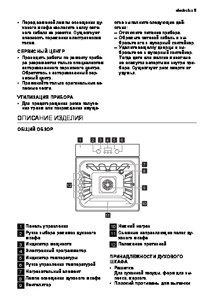 Инструкция духового шкафа Electrolux EOB 33300 X
