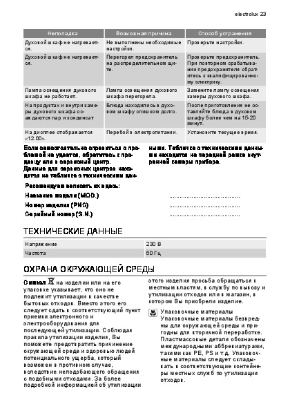 Если листать руководство пользователя духового шкафа Electrolux EOB 33300 X прямо на сайте, не очень удобно для Вас, есть два возможных решения: