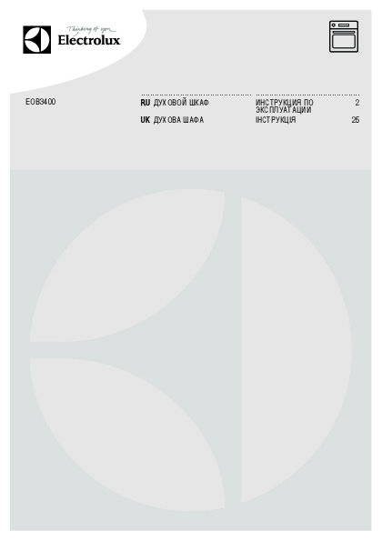 Перед Вами Инструкция духового шкафа Electrolux EOB 3400 AAX. Вы можете ознакомиться и скачать данное руководство по эксплуатации бесплатно. Инструкция по применению на русском языке, предложенная производителем, позволяет правильно использовать Вашу бытовую технику и электронику.
